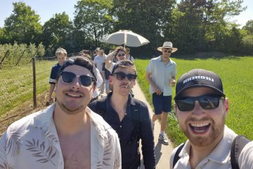 Pünktlich zur Rückkehr auf die Terrasse war das Essen servierbereit: perfekt gegrilltes Fleisch, frische Salate und kühles Bier sorgten für zufriedene Gesichter und volle Mägen. Den Abschluss des Abends bot ein gemeinsamer Aufstieg zum Venushügel, von dem aus man einen atemberaubenden Blick auf ganz Stuttgart genießen konnte.